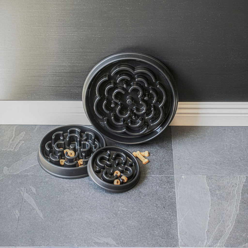 スローフィーダーは、ペットの早食い防止を目的に設計されたフードボウルです。内部の凹凸や仕切りが、フードを一気に食べるのを防ぎ、食べるペースを自然に遅くします。これにより、消化不良や吐き戻しを軽減し、健康的な食事習慣をサポートします。